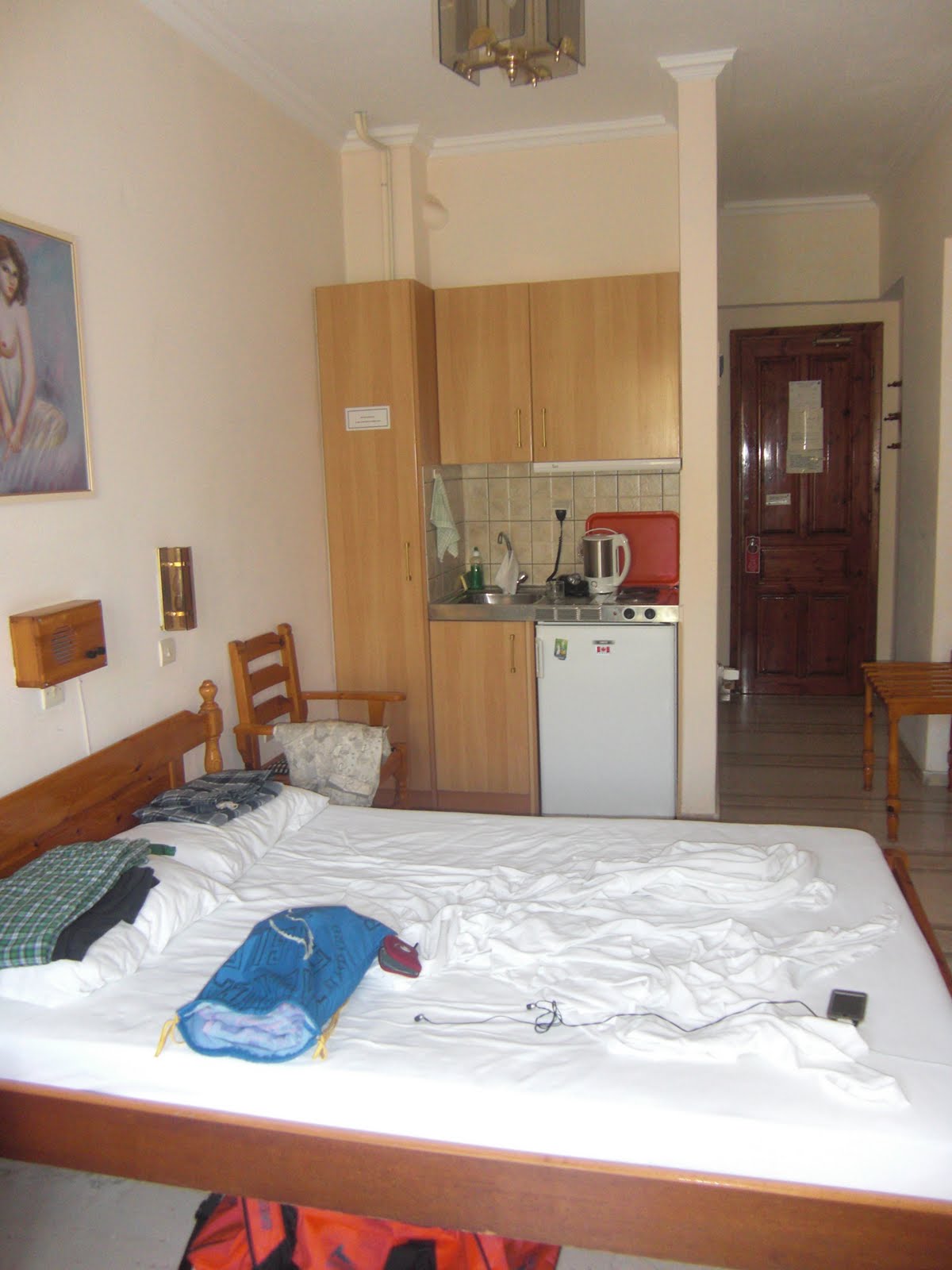 If you’re ever in Samos and you want somewhere fairly cheap to stay, go to the George Sandalis Hotel in Pythagorio. It’s only 30 Euros per night for a double room with en suite bathroom, balcony and little kitchen area (with fridge). It’s clean and tidy, and the old couple who run it, Angelo and Maria, are awesome!