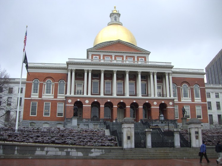On my travels around America, I spent a day wandering around Boston (after getting the train there from Providence, Rhode Island, where I was staying at the time). I followed the Freedom Trail (a red brick or painted line that takes you around the city) and end up in front of this, the Massachusetts State House, with it’s famous Golden Dome that, even on a miserable, rainy day like this one, still glows like the sun.