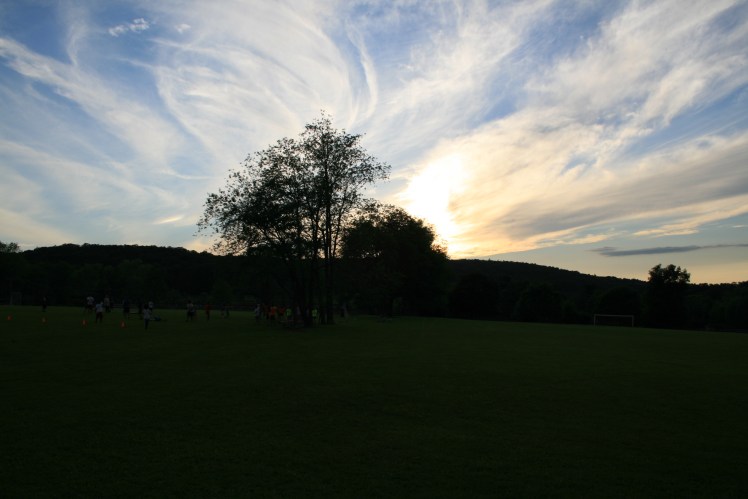 A few days ago I was walking across the athletics fields, where the kids were playing some form of kickball and I happened to glance up and saw this incredible sky, with the clouds spreading out behind the tree, muting the setting sun. It was one of those perfect moments, where everything just falls into place and for a while, nothing else matters.