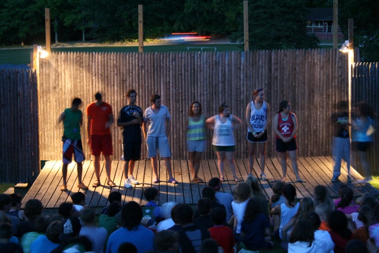At the end of every session at camp we have what’s called a closing campfire, where everyone heads down to the stage and each section performs a little skit (with a different theme each time). It’s a great evening event, and has a very celebratory feel to it, everyone happy and relieved to have made it to the end of the session without (m)any mishaps! This particular photo shows the section heads handing out awards to their campers, a Camp Sloane tradition.