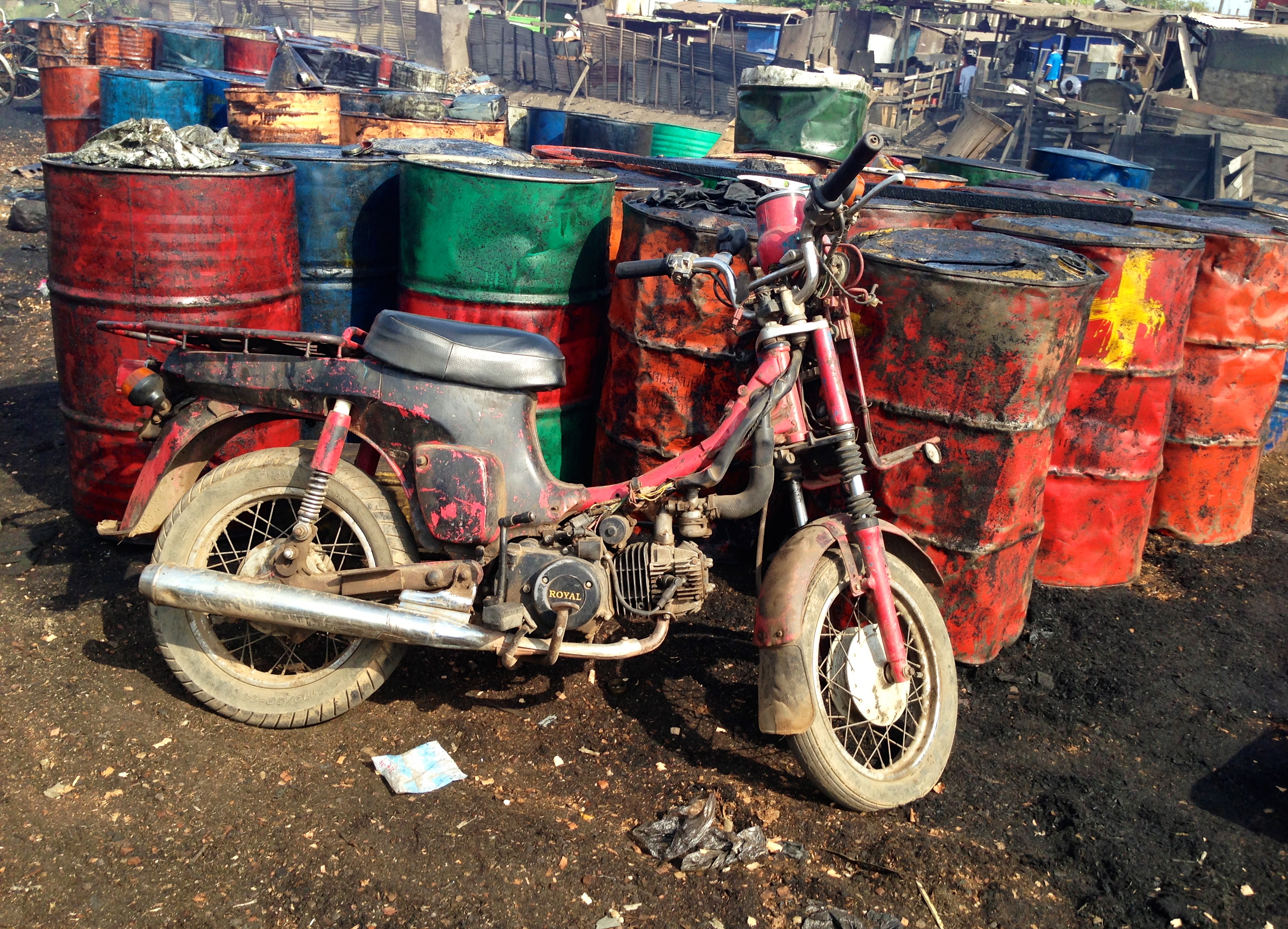 Arriving in the evening meant a quick supper and an early night before our first excursion the next day, out into Ghana’s capital city, Accra, where we visited Agbogbloshie, a slum area that is built on the banks of the Korle Lagoon, atop an e-waste dumping ground and houses 90,000 people in it’s small four acre space. As we wandered around, covering our noses and mouths from the foul stench that rose from the rubbish that surrounded us, it was amazing to see the smiling faces of the the children and families who lived there, all in good spirits and eager to show us around. Children come up and shake our hands. “I like you”, they say as they hug us, “I like you, hello”. As we wander around I notice that Football really is a universal language. It blares out of every other building, and from the TV aerials standing high above the shacks it seems that it’s something they all have access to. Chalked up on walls are the times of the Chelsea match.