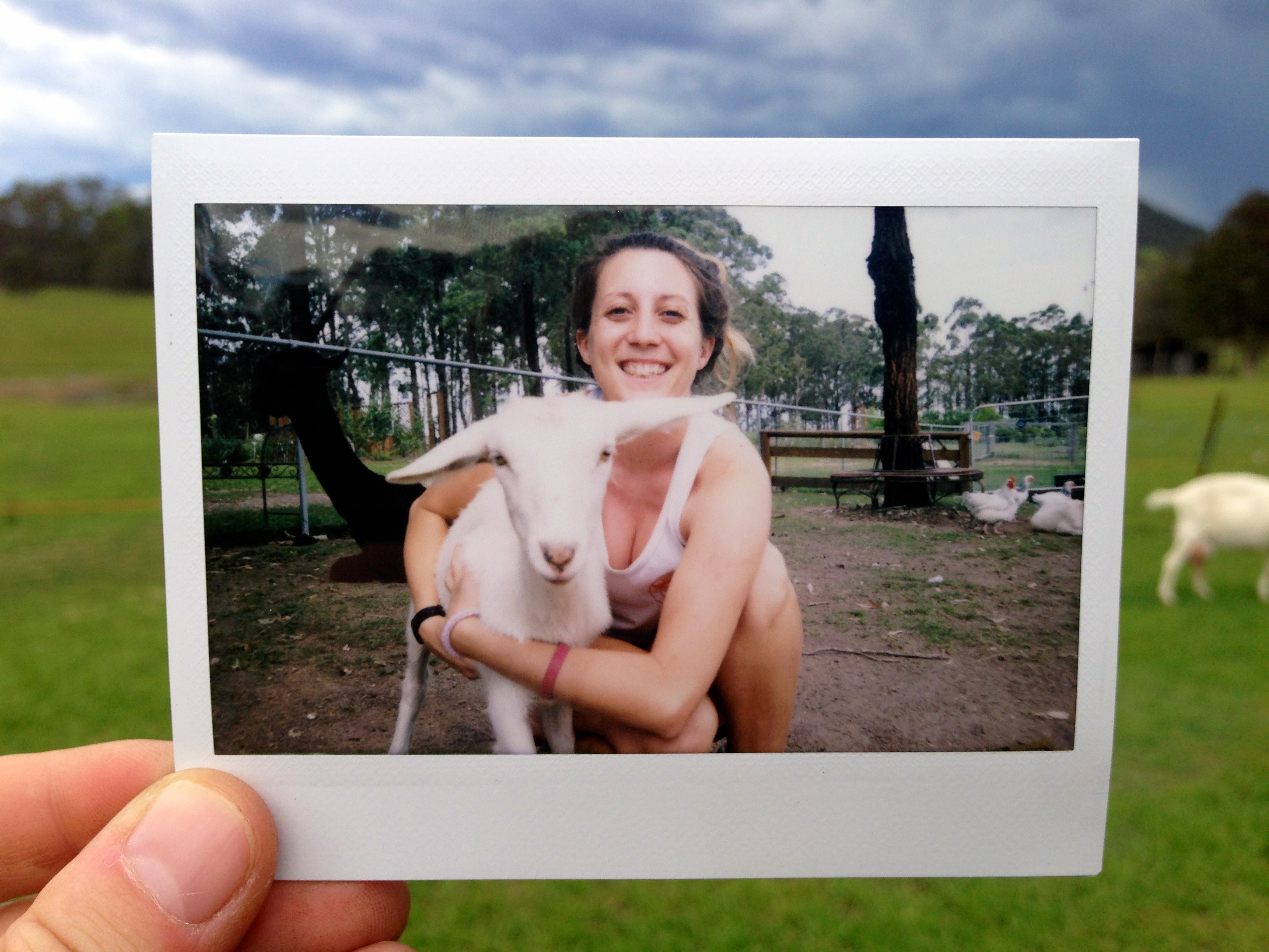 Wow. This week has absolutely flown by – I can’t quite believe it’s Sunday again already! It’s really been a continuation of #farmlife (yes, I really did just use a hash tag in the middle of some continuous prose) here at honeycomb valley, full of fun, laughs, dirt, honey, children and animals, so I thought this week’s photo should demonstrate just that. I’ve really come to absolutely adore all these animals, from the tiniest chicken, to the biggest horse (yes even me, who’s scared of horses), with all the goats, sheep, cows and alpacas in between. You saw my all-time favourite furry friend a few weeks ago, so I thought I’d crack the Polaroid camera out this week and take some fun pics of some more of my favs (you can find more photos on my Facebook page) – this one here is Katy, the cutest baby goat you’ll ever meet. She runs over to me whenever I go in the petting area, and gives me cuddles and kisses (which pretty much just involves her licking all the dirt and honey and sweat off my skin…yum) – who could ask for a better farm friend?