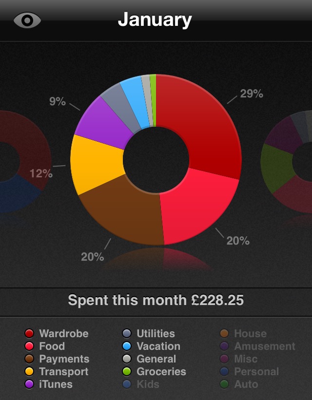 Money Spent (in GBP): £228.25 over 31 days = £7.36 per day!