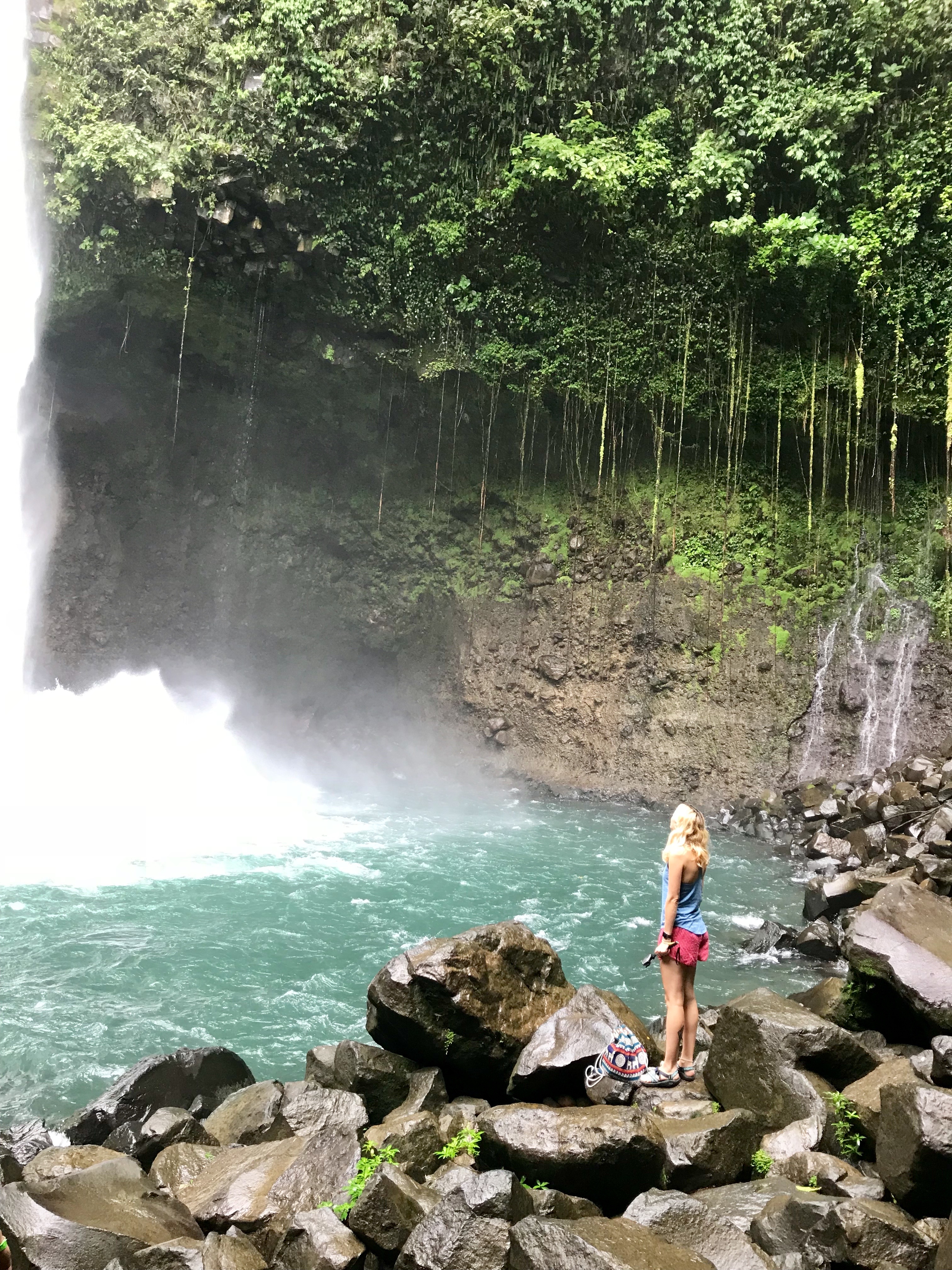 Our next day in La Fortuna took us to the enormous waterfall of the same name. Despite the extortionate entry fee to the park, we enjoyed an awesome morning exploring – myself and Tegan even braved the freezing cold water running off the cascades falling from above! We walked all the way back to town from the waterfall and made a puppy friend on the way – he followed us all the way down the hill and we named him ‘the happiest dog in the world’.